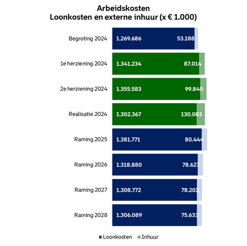 Arbeidskosten bestaan uit het geheel van loonkosten voor medewerkers in dienst van de gemeente Rotterdam en kosten voor ingehuurde medewerkers.